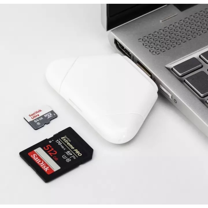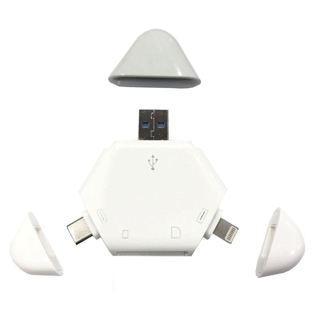 Đầu đọc thẻ TF, SD sử dụng 3 cổng Type C, Lighning, USB
