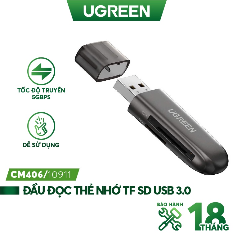 Máy tính & Laptop > Phụ Kiện Máy Tính > Bộ chia cổng USB & Đọc thẻ nhớ || Đầu đọc thẻ TF SD USB 3.0 UGREEN CM406 10911Còn hàng