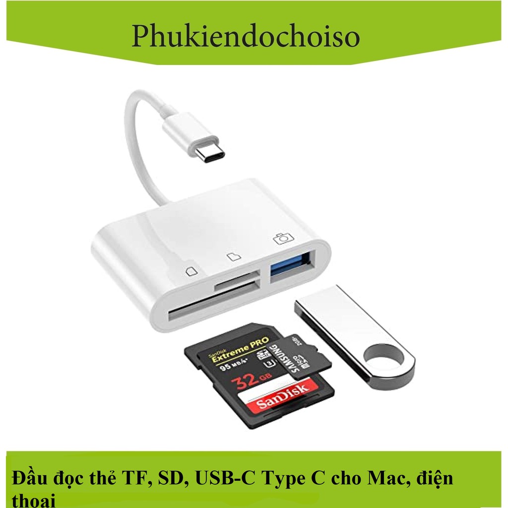 Điện Thoại & Phụ Kiện > Phụ kiện > Thẻ nhớ || Đầu đọc thẻ TF, SD, USB chuẩn Type C cho Mac, điện thoạiCòn hàng
