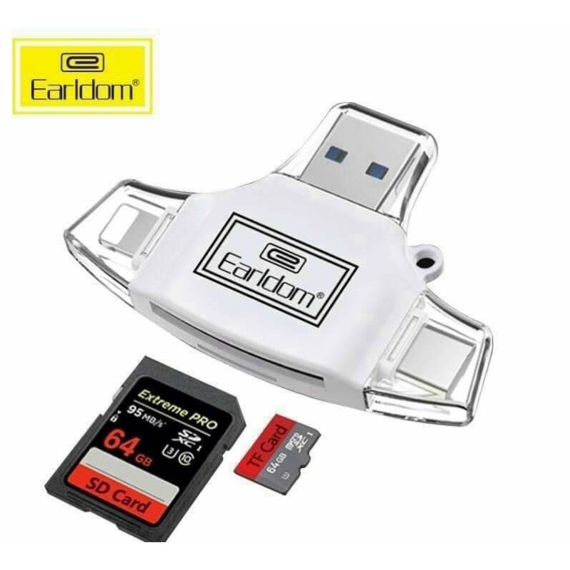 Đầu đọc thẻ trên điện thoại 3in1 cổng Lightning,Typ C,USB
