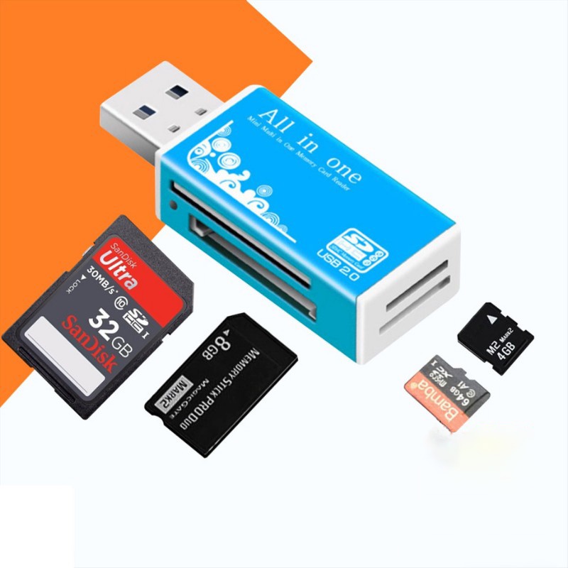 Máy tính & Laptop > Phụ Kiện Máy Tính > Bộ chia cổng USB & Đọc thẻ nhớ || Đầu Đọc Thẻ USB 2.0 All in One Đọc Thẻ SD/SDHC/MMC/RSMMC/MS/MS Duo/MS PRO Duo/Micro Ms [M2]/T-Flash Micro SDCòn hàng