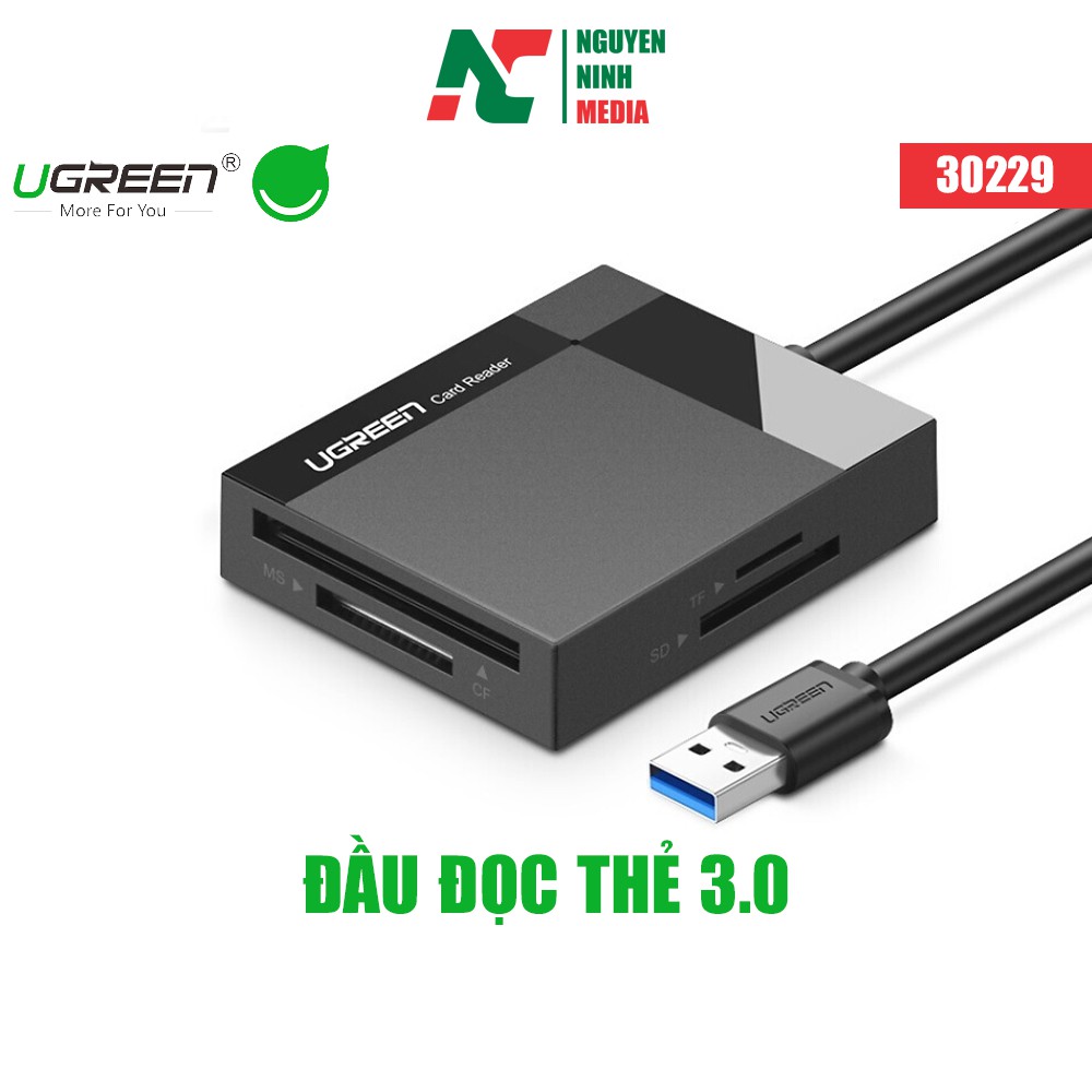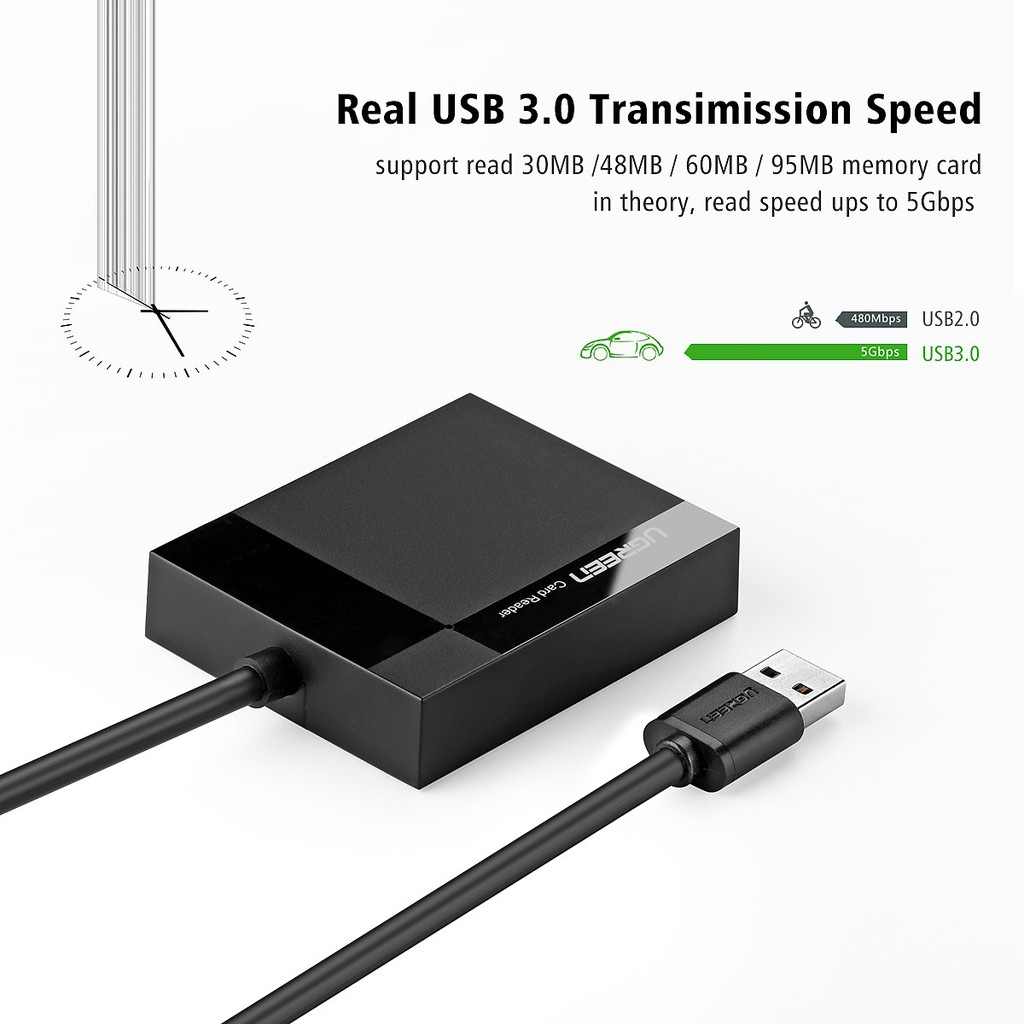 Giới thiệu Đầu đọc thẻ USB 3.0 hỗ trợ thẻ TF/SD/CF/MS dài 0.5m UGREEN 30229 - Hàng Chính Hãng