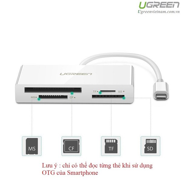 Đầu đọc thẻ USB Type-C cho thẻ nhớ TF/SD/CF/MS Ugreen 40444 cao cấp