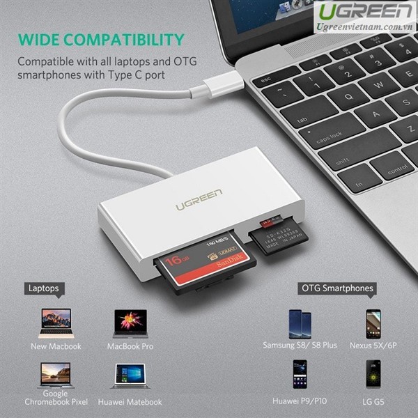 Giới thiệu Đầu đọc thẻ USB Type-C cho thẻ nhớ TF/SD/CF/MS Ugreen 40444 cao cấp