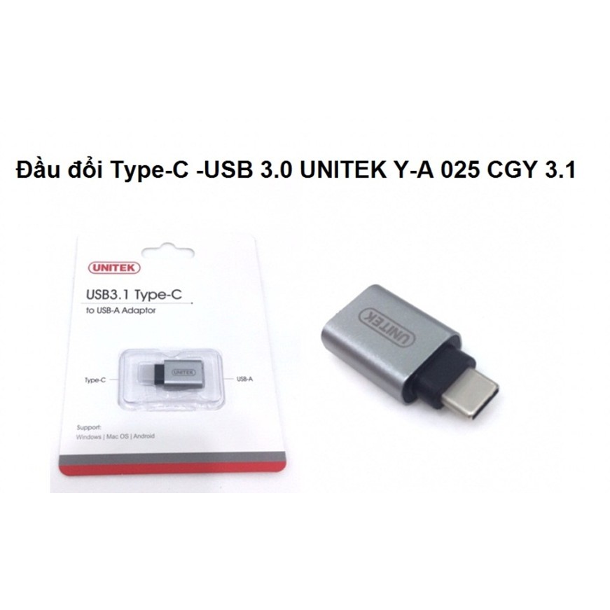 Đầu đổi Type C 3.1 -> USB 3.0 OTG Unitek YA 025CGYHàng chính hãng có tem chống hàng giả
