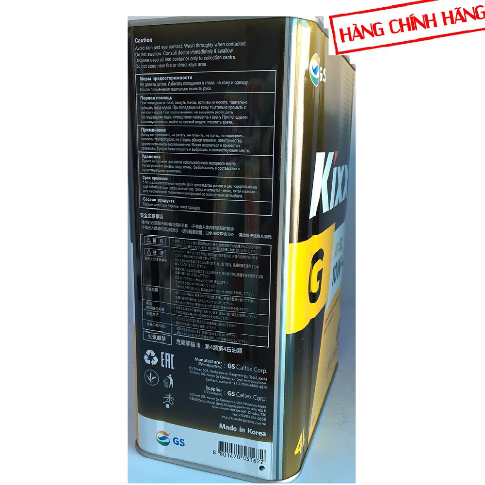 Ô tô > Dầu nhớt và phụ gia ô tô > Mỡ & Chất bôi trơn || Dầu động cơ xăng KixxG SL 10W40 4L thùng thiếc Thích hợp cho động cơ xăng bốn thì giúp động cơ tăng tuổi thọ khi sử dụngCòn hàng