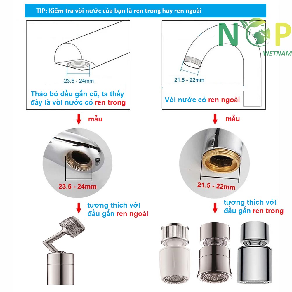 NẾU REN VÒI NƯỚC CỦA BẠN LÀ REN TRONG, BẠN CHỌN SẢN PHẨM KÈM THEO REN CHUYỂN ĐỔI LÀ SỬ DỤNG ĐƯỢC.