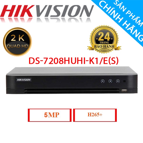 Đầu ghi Hikvision 5Mp 8 kênh 7208HUHI-K1/E(S) chất lượng hình ảnh 2K+ hỗ trợ camera có mic thu âmHỗ trợ cho camera độ phân giải lên đến 8Mp, có hỗ trợ các dòng camera hãng khác như Dahua, KBvision,...