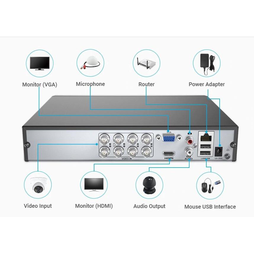 + Hỗ trợ 4/8 ngõ vào video, 1 cổng audio input.