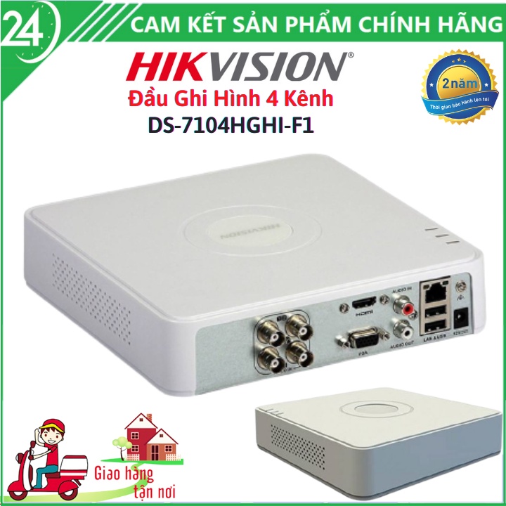 Đầu Ghi Hình Hikvision 4 Kênh DS-7104HGHI-F1 , Hỗ Trợ HDMI , VGA , Hỗ Trợ 1 Ổ Cứng SATA x 6TB , 128 Người Truy Cập