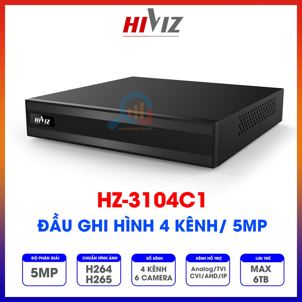 Đầu ghi hình Hiviz - HZ-3104C1 4 kênh 5MP, hỗ trợ camera Analog/TVI/CVI/AHD/IP - Chính hãng - Bảo hành 24 tháng