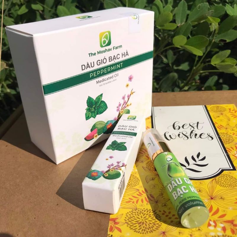 Dầu Gió Bạc Hà Thiên Nhiên The Moshav Farm -Thơm Mát Thông Mũi Xua Côn Trùng-Hộp 10 chai x 5ml