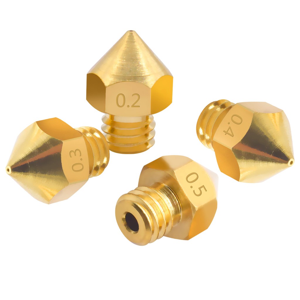 Đầu phun nhựa kích thước 0.2/0.3/0.4/0.5/0.8mm cho máy in 3D, máy tạo mẫu nhanh. Dùng cho sọi 1.75mm. Dẫn nhiệt tốt, dễ dàng sử dụng và thay thế. Thiết kế tối ưu và giảm chi phí thấp nhất.Kim phun được gia công một cách chính xác, có các kích thước 0.2 và 0.4 mm, đây là kim phun phổ biến nhất trên thị thường. Kim phun 0.4mm in vật thể nhanh hơn tuy nhiên độ mịn không cao. Trong khi đó kim phun 0.2mm in lâu nhưng bù lại cho độ mịn của vật thể cao hơn.