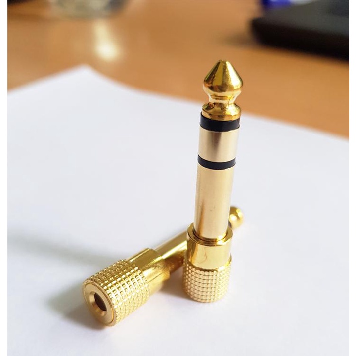 Đầu jack chuyển đổi âm thanh từ cổng 3.5mm sang 6.5mm giúp chuyển đổi linh hoạt các thiết bị điện tử, âm thanh sử dùng đầu kết nối 3.5mm sang đầu rắc 6ly. sản phẩm giúp kết nối các đầu nhận micro sử dụng đầu 3.5 với amply hay vang số hoặc tai nghe với amply, mixer, đàn organ, đàn guitar và rất nhiều thiết bị âm thanh khác,… không gây nhiễu rè âm, đảm bảo chất lượng âm thanh không đổiCó thể nói đây là một phụ kiện tiện lợi giúp kết nối các thiết bị hiện đại dùng đầu 3.5mm với các thiết bị đang sử dụng cổng 6.5mm.Nhỏ gọn, tiện lợi, dễ dàng sử dụng với nhiều thiết bị