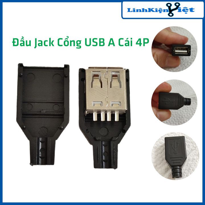 Đầu Jack Cổng USB A Cái 4P + Vỏ✔️ Đầu jack USB A Cái là phụ kiện ghép nối quan trọng