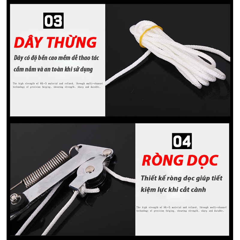 Để phục vụ bà con nông dân thuận tiện trong quá trình chăm sóc vườn nhà, chúng tôi xin giới thiệu tới quý vị 1 sản phẩm hiệu quả nhất trong công việc này , Kéo cắt cành trên cao cán dài dây giật sẽ giúp bạn giải quyết mọi vấn đề trên. Kéo được thiết kế phù hợp với hầu hết các loại cây ăn trái, kéo có trọng lượng nhẹ , chiều cao thân cán có thể tăng giảm linh động. Nguyên lý vận hành và lắp ráp dễ dàng, lưỡi kéo rất bén nên cắt nhanh, lực kéo nhẹ do được điều khiển bởi hệ thống tay cầm thông qua dây kéo và ròng rọc. Có Kéo cắt cành trên cao cán dài dây giật của chúng tôi hỗ trợ, tin chắc công việc cắt tỉa tạo tán của bạn sẽ trở nên nhanh chóng, nhẹ nhàng hơn, đặc biệt là các chị em nội trợ cũng có thể thử sức trong công việc cắt tỉa cành, vì kéo hoạt động rất dễ không mất nhiều sức.