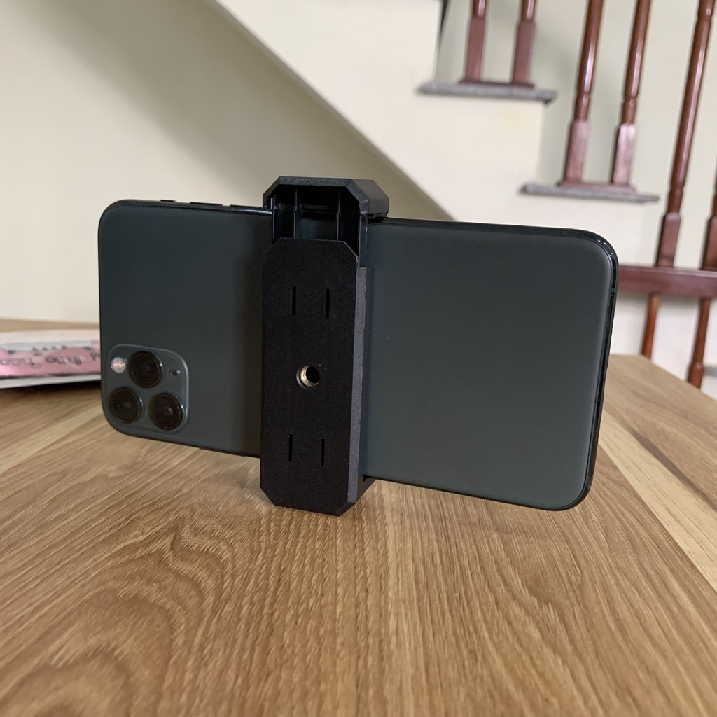 - Đầu kẹp là phụ kiện bổ sung giúp gắn điện thoại vào chân máy ảnh.