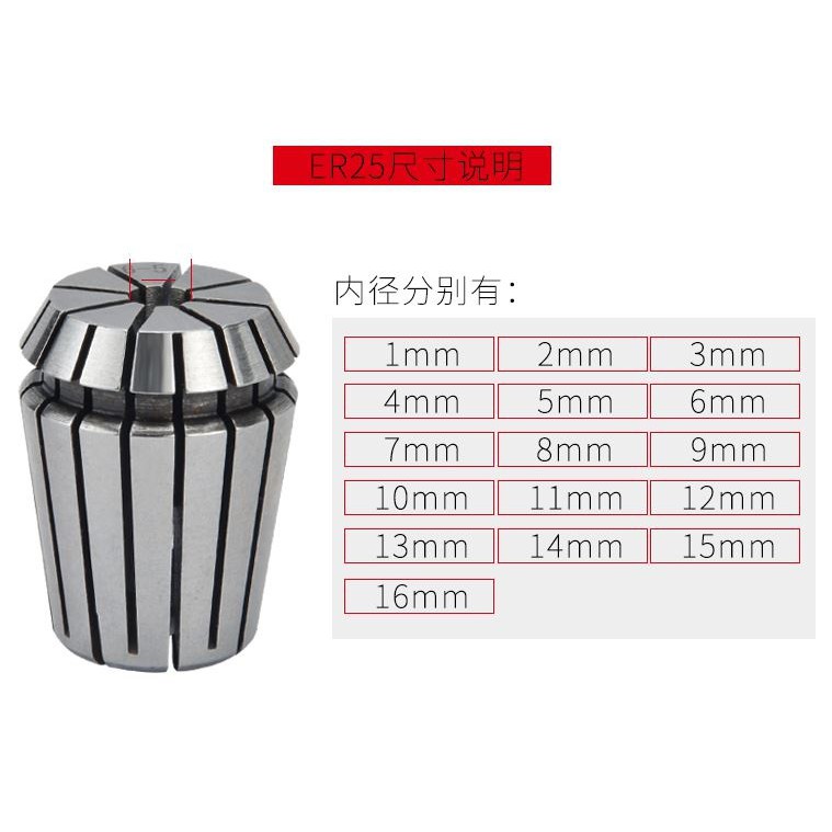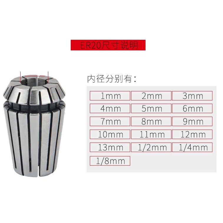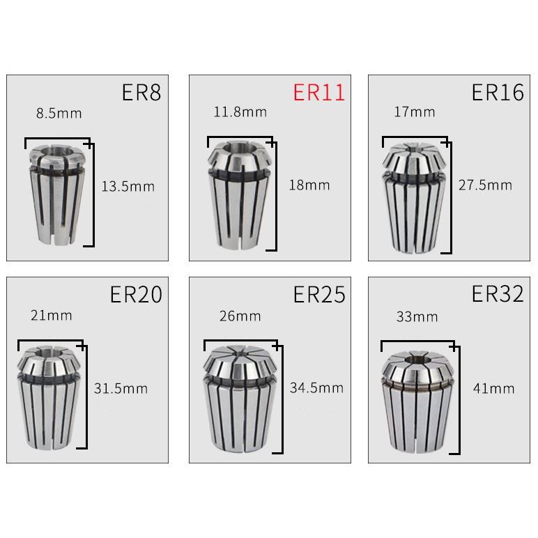 Collet có các loại: 3.175,4.00,6.00,6.35,8.0,10.0,12.7