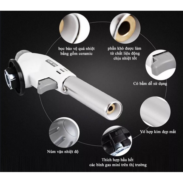Đầu khò gas mini đánh lửa tự động cực mạnh,điều chỉnh nhiệt độ cao - Đèn khè thực phẩm nấu ăn Sử Dụng Bình Gas Mini