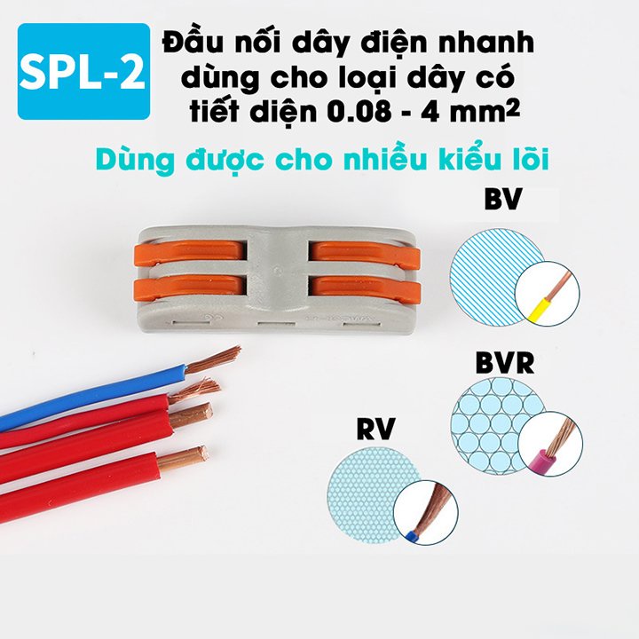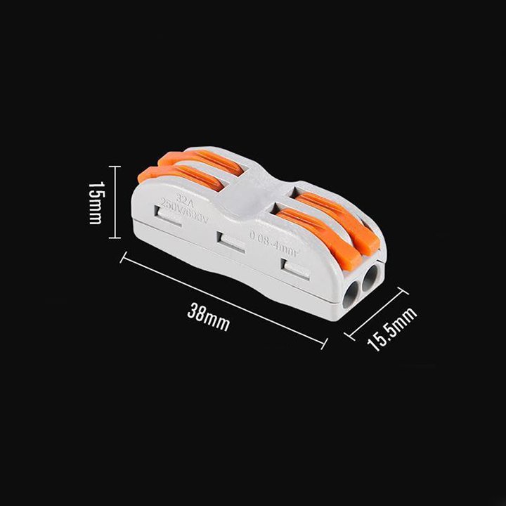 Đầu khớp cút cầu nối nhanh dây điện siêu nhanh siêu tiện lợi 2P 2 đầu 4 cổng an toàn thông minhCút nối dây điện nhanh giúp bạn nối các dây điện với nhau trong vòng 3 giây, không cần kìm, không cần băng dính cách điện và việc tháo dây khỏi cút nối khi không cần đến cũng dễ dàng như lúc lắp vào. Hỗ trợ nối cùng lúc từ 2-5 dây điện đồng thời, mối nối đẹp, gọn gàng, an toàn, chống chạm chập điện, cháy nổi trong các hộp âm tường hoặc hộp nổi…..