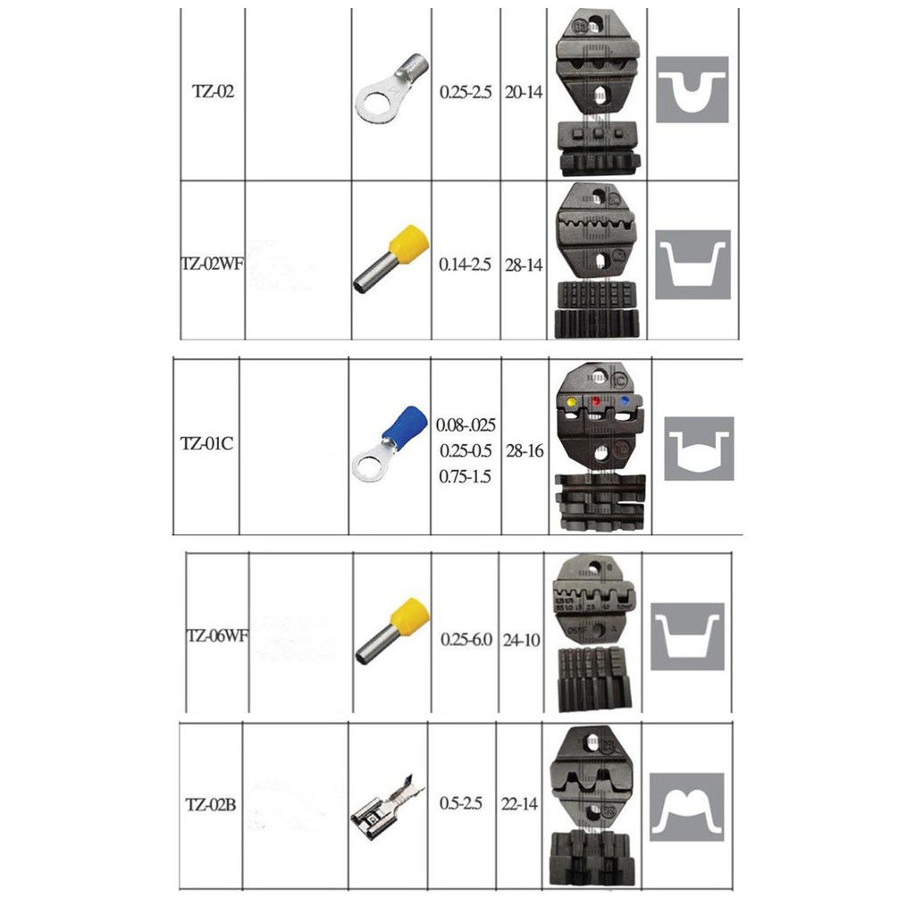 Đầu kìm bấm đầu cos 5 loại gồm có loại TZ-02, 02wF, 01C, 06WF, 02BĐơn giá :120k/ 1 đầu