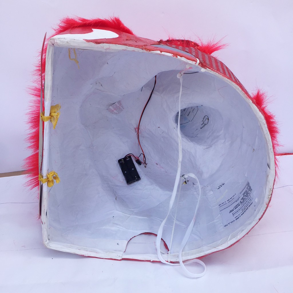 Đầu lân có đèn sáng ở mắt 2 bên (lắp pin AA)
