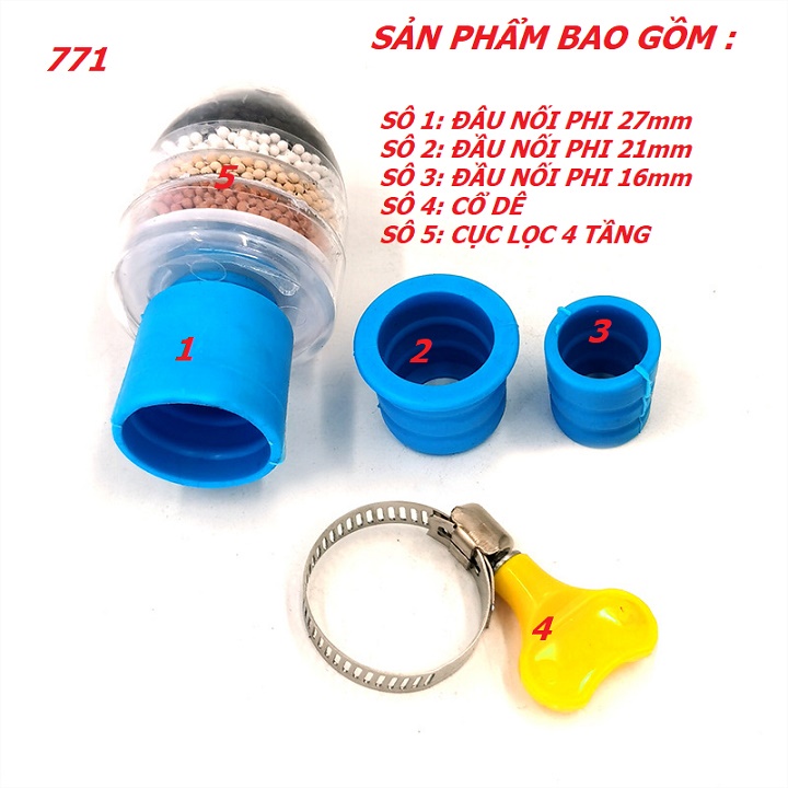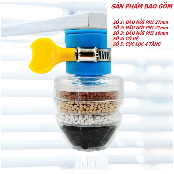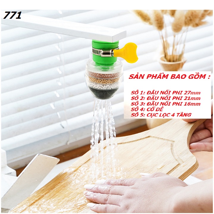 ĐẦU LỌC 4 TẦNG LỌC NƯỚC TẠI VÒI CÓ PHI TỪ 16mm ĐẾN 27mm - TH771