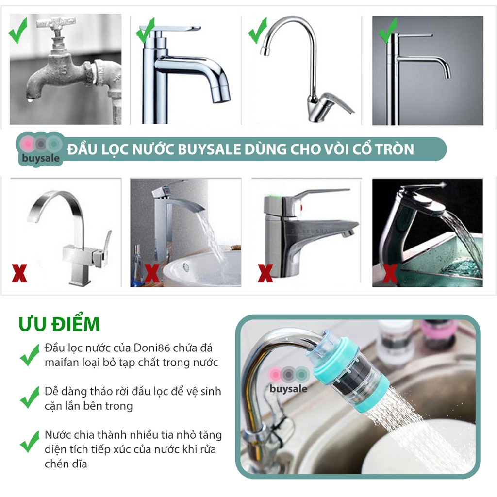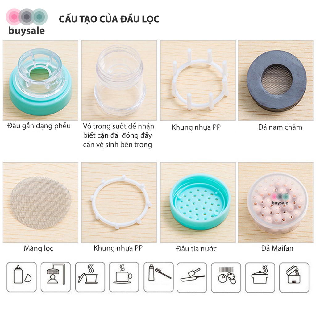 ĐẶC ĐIỂM NỔI BẬT✅ Đầu lọc nước có 2 ngăn lọc: nam châm hút ion kim loại sinh ra từ gỉ của đường ống dẫn nước và đá maifan loại bỏ tạp chất