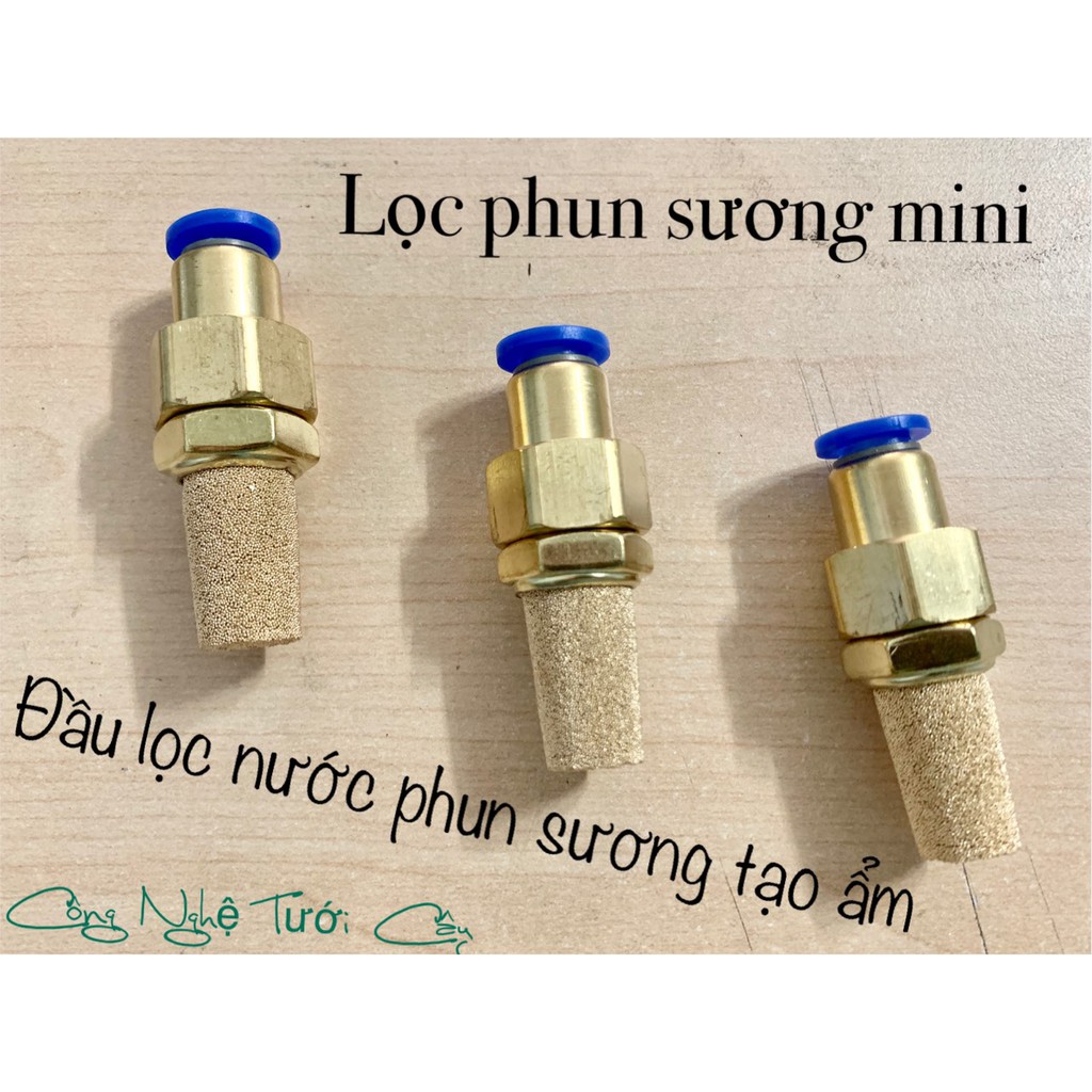 Đầu lọc nước mini cho hệ thống phun sương giúp cho nước vào máy bơm sạch tuyệt đối, không còn cặn bẩn. Giúp cho hệ thống phun sương không bị tắc. Bạn khỏi lo việc liên tục phải đi tháo các béc phun sương ra để vệ sinh, chống tắc nghẽn.Lưu ý: Định kỳ các bạn nên thao bộ lọc ra vệ sinh, rửa sạch các cặn bẩn bám ở đầu lọc trong quá trình lọc nước.