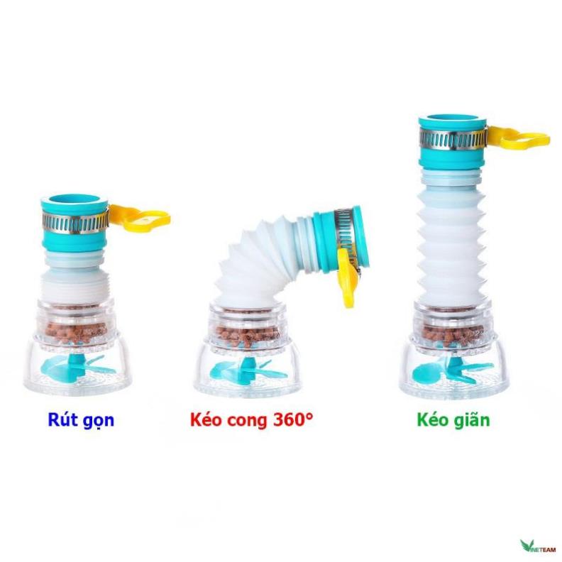 - Điều hướng tia nước 360 độ giúp xịt nước đến nơi cần đến, tránh văng nước vào người, tiết kiệm nước trung bình 30%. Xả trôi bụi bẩn trên rau củ quả mà không làm dập nát rau củ như các loại đầu vòi tăng áp thông thường.
