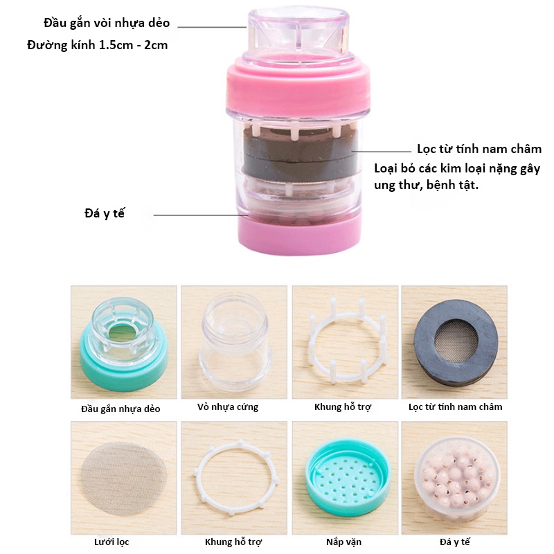 Đầu lọc nước tai vòi 3 lớp lọc kim loại nặng trong nước và chống phèn