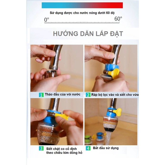 Giới thiệu Đầu Lọc Nước Tại Vòi 6 Lớp Lọc Lắp Được Cho Đầu Vòi 15-32mm
