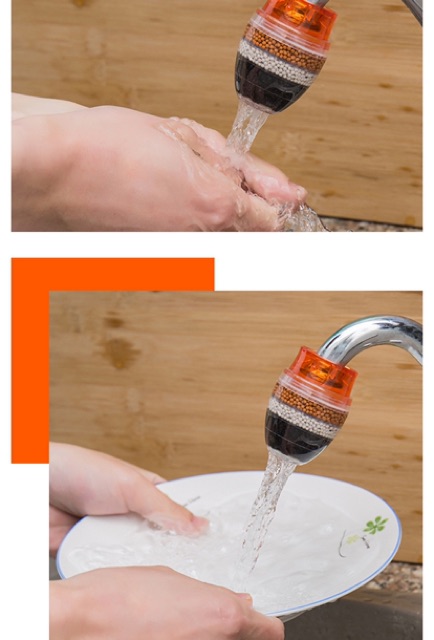 Đầu lọc nước tại vòi 5 tầng.Sản phẩm có thiết kế nhỏ gọn, dễ dàng lắp đặt, tương thích với hầu hết các loại vòi nước. Dụng cụ có thể lọc các độc tố gây bệnh như asen, amoni, các kim loại nặng, đóng cặn... và khử sạch mùi nước sinh hoạt.