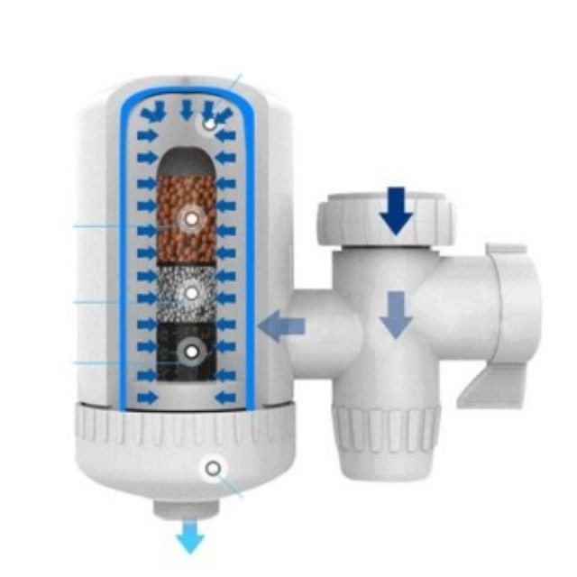 Đây là sản phẩm có cấu tạo khá đơn giản, bao gồm nhiều lớp lọc được tích hợp vào trong duy nhất một lõi, dùng để lắp trực tiếp vào vòi nước dưới bồn rửa, do đó không sử dụng điện mà hoạt động nhờ vào áp lực nước chảy xuống.Các lớp lọc chủ yếu bao gồm cát, sỏi, than hoạt tính dạng bột có trộn thêm chất liên kết và gốm chống khuẩn, than hoạt tính có công dụng hấp phụ chất màu, mùi, hợp chất hữu cơ và một số ion kim loại nặng...
