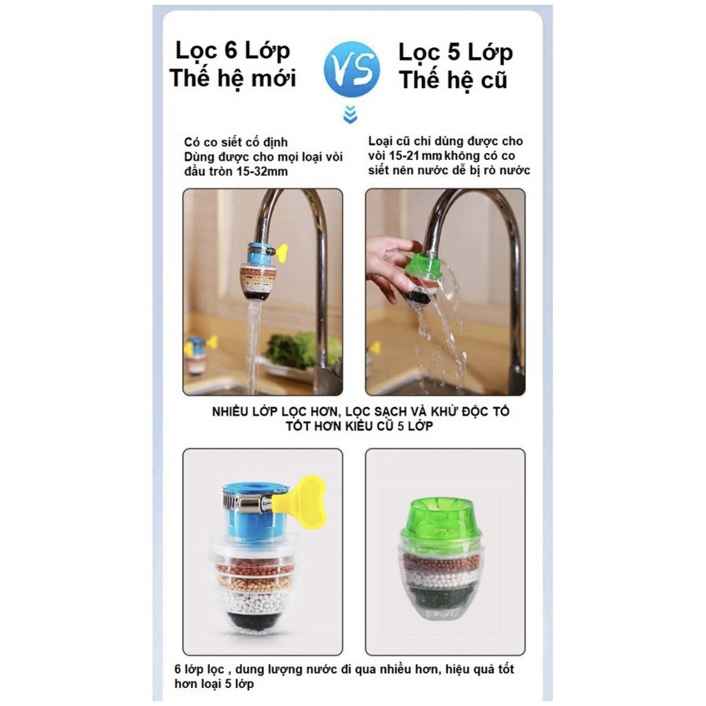 Đầu Lọc Nước Trực Tiếp Tại Vòi 6 Tầng Lọc V4 - Lọc Nước Mini 6 Tầng Có Co Tăng Giảm Gắn Được Mọi Loại Vòi--------------------------------------------------------------------------