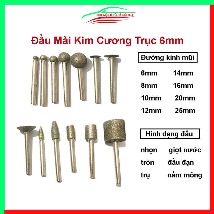 Đầu mài kim cương chân 6mm siêu cứng đủ kích thước