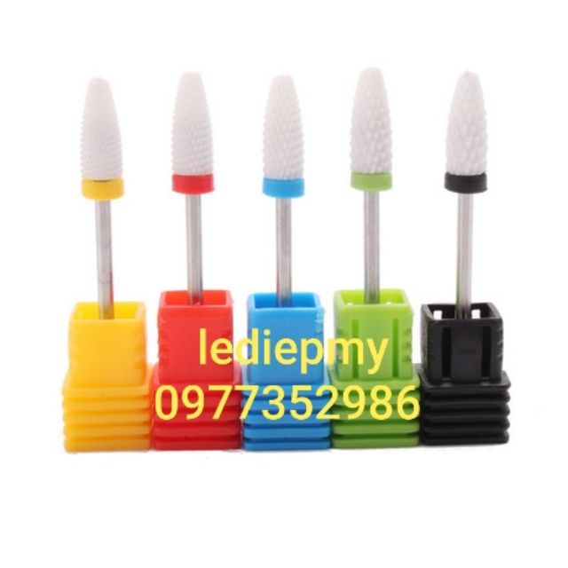 Đầu mài sứ dạng parabol lắp máy mài móng cực thích giúp mài móng tay mịn nhanh không ảnh hưởng đến móng tay gây đau rát nếu vô tình mài ra ngoài da....được các thợ Nail chuyên nghiệp tin dùng.+ Đầu mài sứ dạng parabol có 5 cỡ để khách nựa chọn: