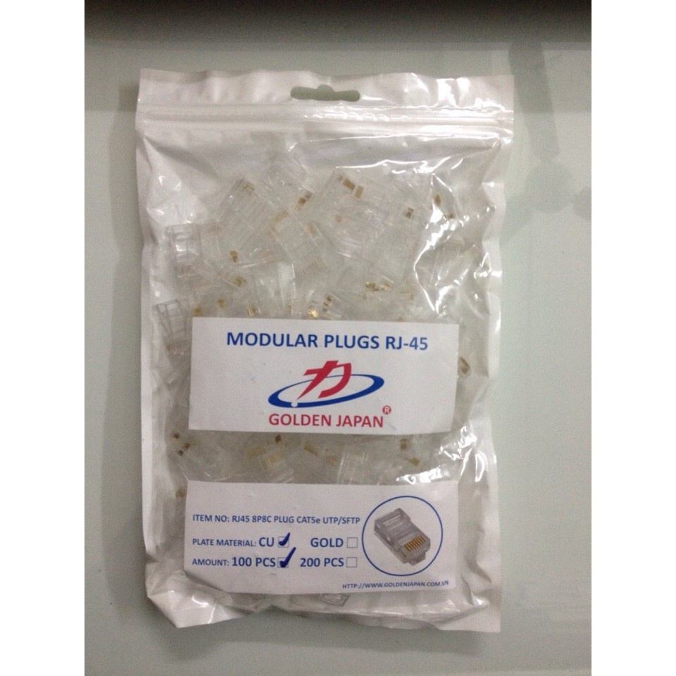 Đầu mạng (Hạt mạng) RJ45 Golden dùng cho cat5 Cat6- Được làm từ nhựa nguyên chất không dùng nhựa tái chế nên đảm bảo về độ bền, dẻo dai và màu sắc không vẩn đục.