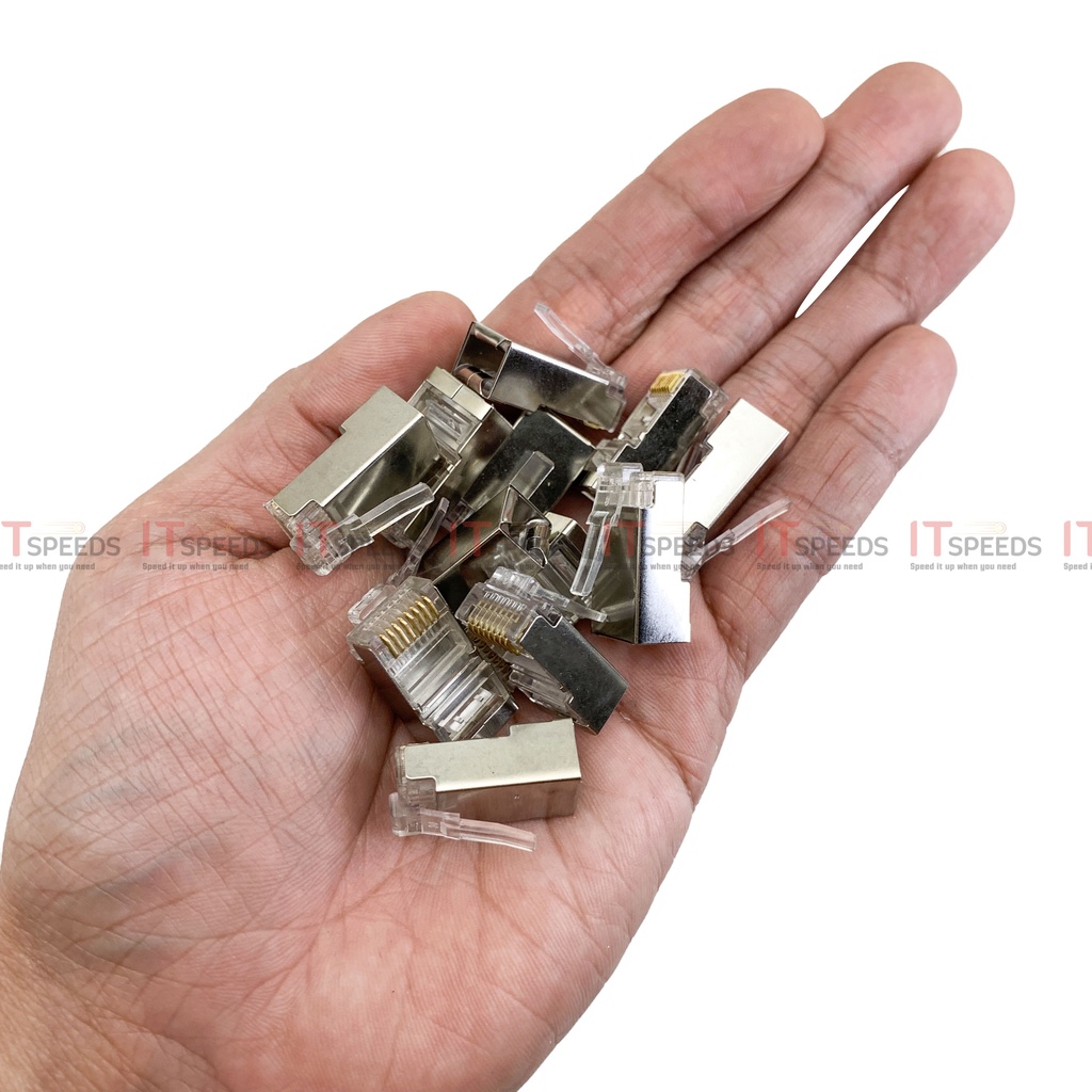Đầu Mạng, Hạt Mạng, RJ45, Nhựa PS Trong Suốt, Bọc Kim Loại Chống Nhiễu, Dùng Bấm Cáp Mạng Cat5, Cat6, Chính Hãng Ensoho