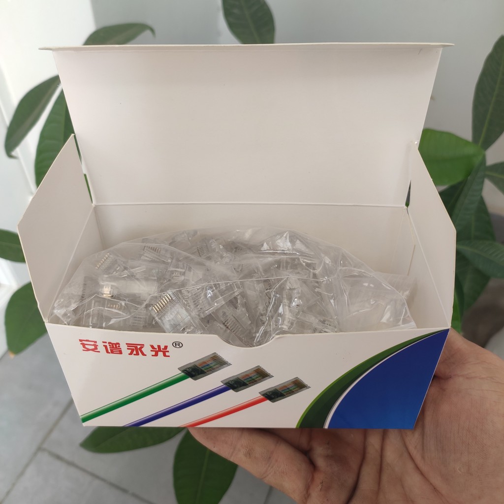 Máy tính & Laptop > Thiết Bị Mạng > Khác || Đầu mạng xuyên thấu rj45 CAT5E Mạ Vàng chân tiếp xúc tốt (Hộp 100 con)Còn hàng