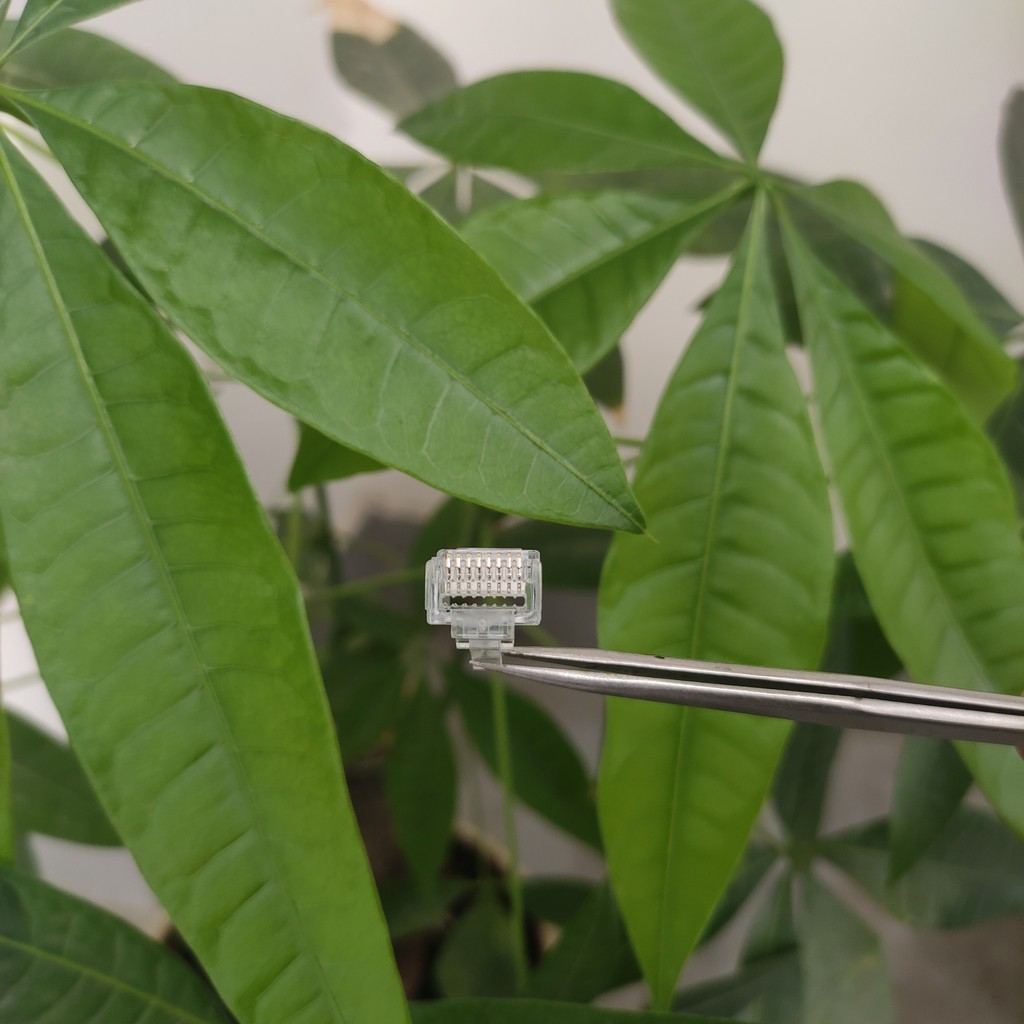 + Bên cạnh đó, các đầu dây được kềm cắt gọt ngay phía trên đầu mạng nên cho điểm tiếp xúc tốt và chắc chắn.