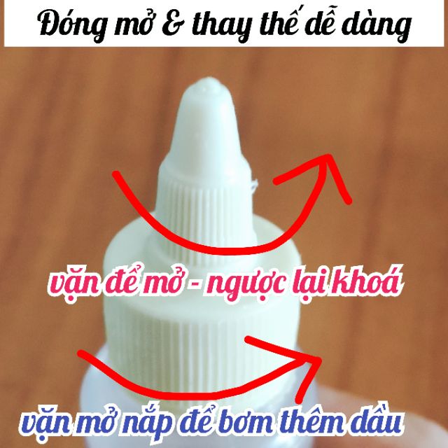 - Dầu được đặt trong chai nhỏ cứng, bền. Vặn nắp dùng xong vặn lại khóa, rất tiện dụng.