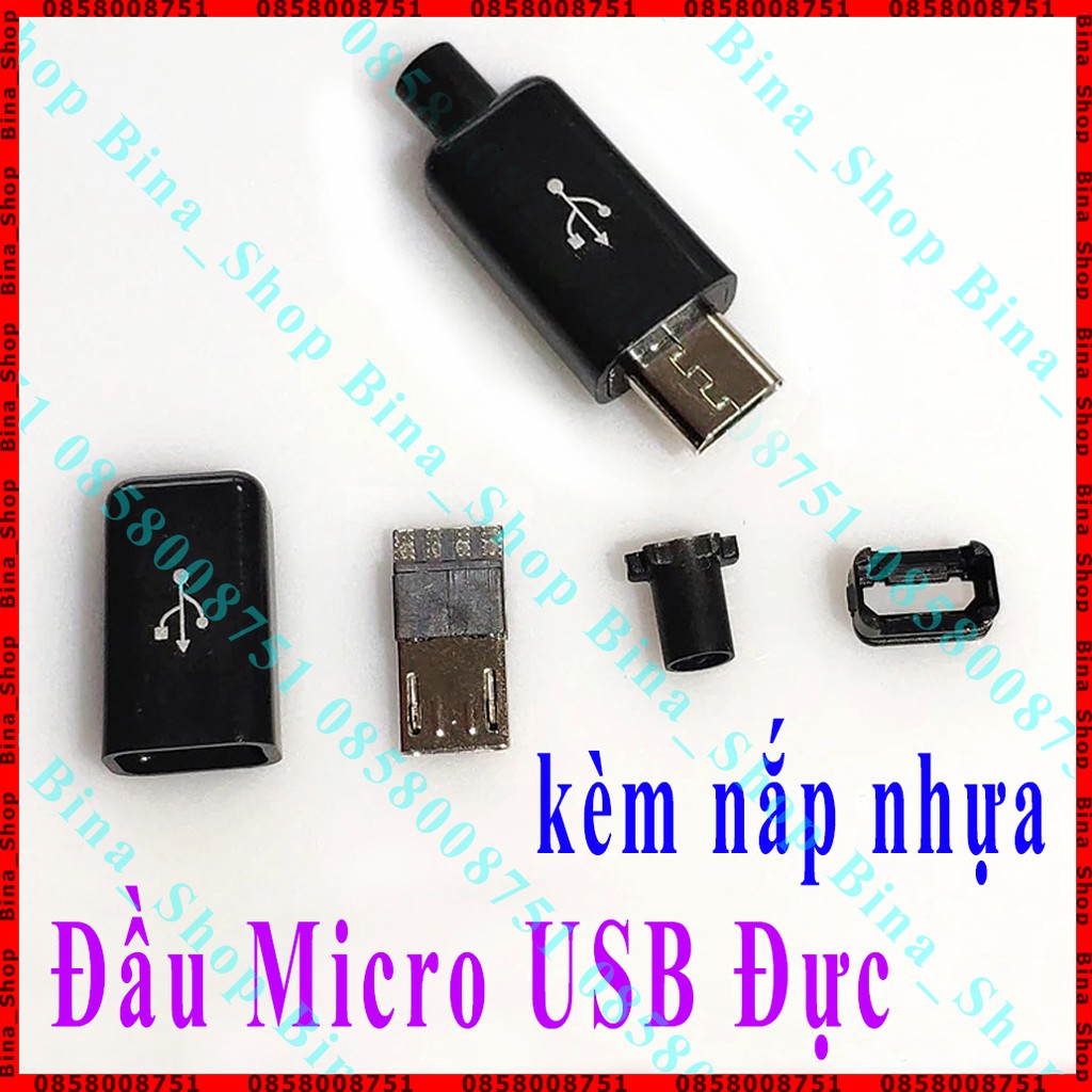 Đầu Micro USB (4P+1P) đực DIY kèm nắp nhựa