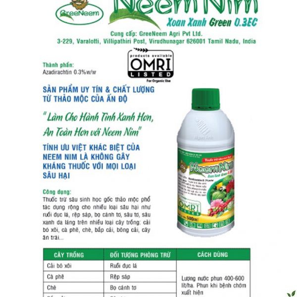 Giới thiệu Dầu Neem Hữu Cơ Bảo Vệ Cây Trồng 100ml- NEMNIM Ấn Độ 100ml cty Ngân Anh