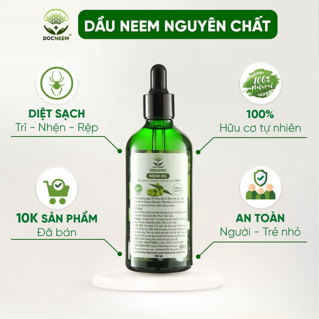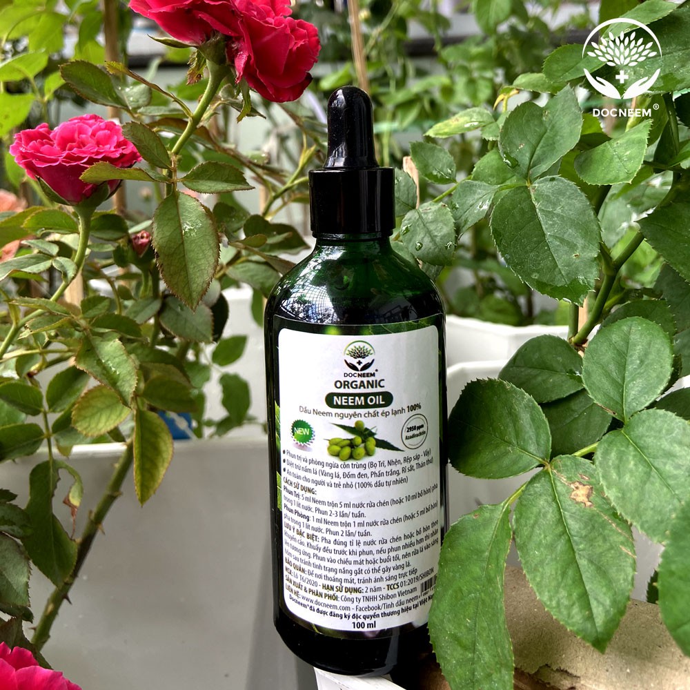 Dầu neem oil DOCNEEM hữu cơ phòng trị sâu bệnh hoa hồng, phong lan, cây cảnh, nguyên chất ép lạnh, hàng chính hãng 100ml
