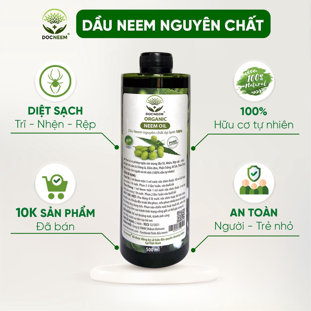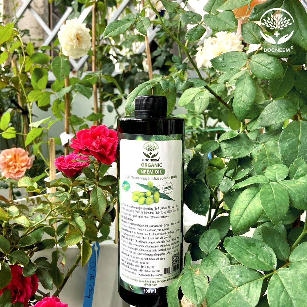 Dầu neem oil DOCNEEM hữu cơ phòng trị sâu bệnh hoa hồng, phong lan, cây cảnh, nguyên chất ép lạnh, hàng chính hãng 500ml