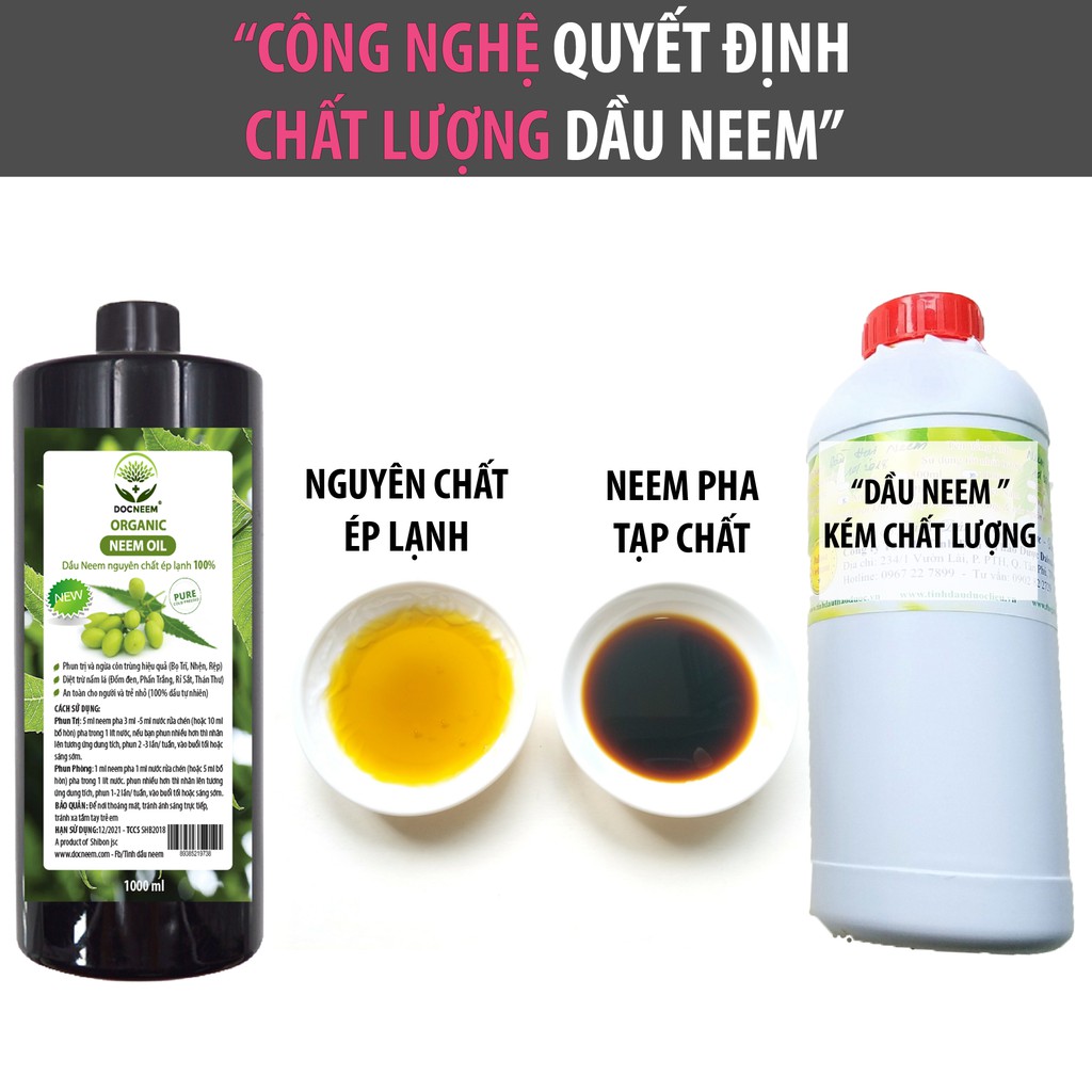Dầu neem oil DOCNEEM hữu cơ phòng trị sâu bệnh hoa hồng, phong lan, cây cảnh, nguyên chất ép lạnh, hàng chính hãng 1 lít