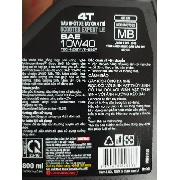 Ô tô > Dầu nhớt và phụ gia ô tô > Mỡ & Chất bôi trơn || DÂU NHỚT MOTUL GA 800ML Scooter Expert LE 10W40Còn hàng