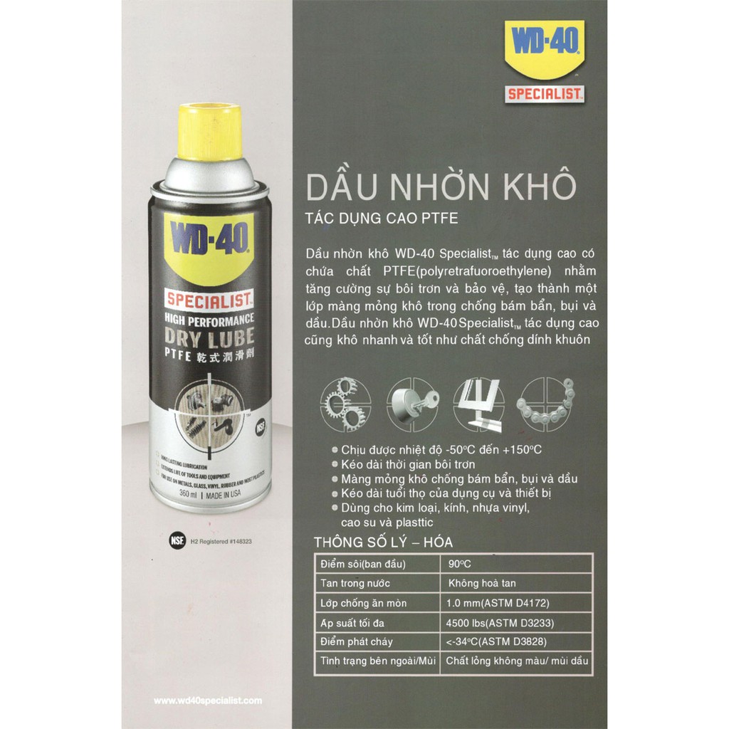 Giới thiệu Dầu nhờn khô WD-40 Specialist High Performance Dry Lube (360ml)