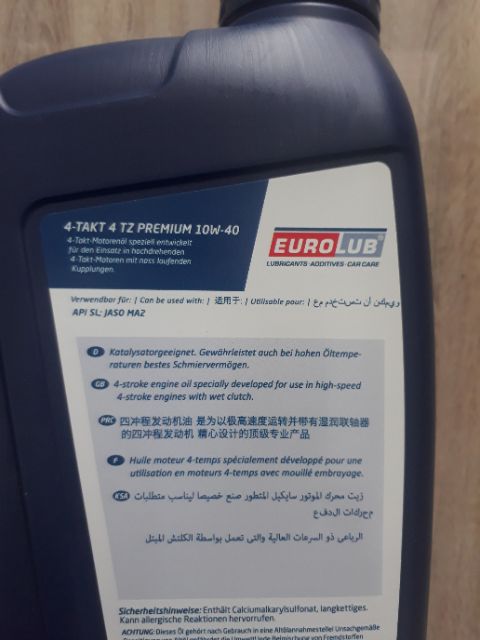 Ô tô > Dầu nhớt và phụ gia ô tô > Mỡ & Chất bôi trơn || Dầu nhớt cao cấp xe số và xe tay côn EuroLub 4TZ Premium 10W-40 1LCòn hàng